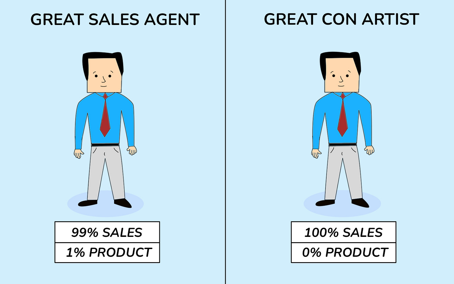 Distinguishing between a great sales agent and a great con artist isn’t always discernable at the onset of the engagement. We generally are able to understand the subtle difference only after the point of sale.
